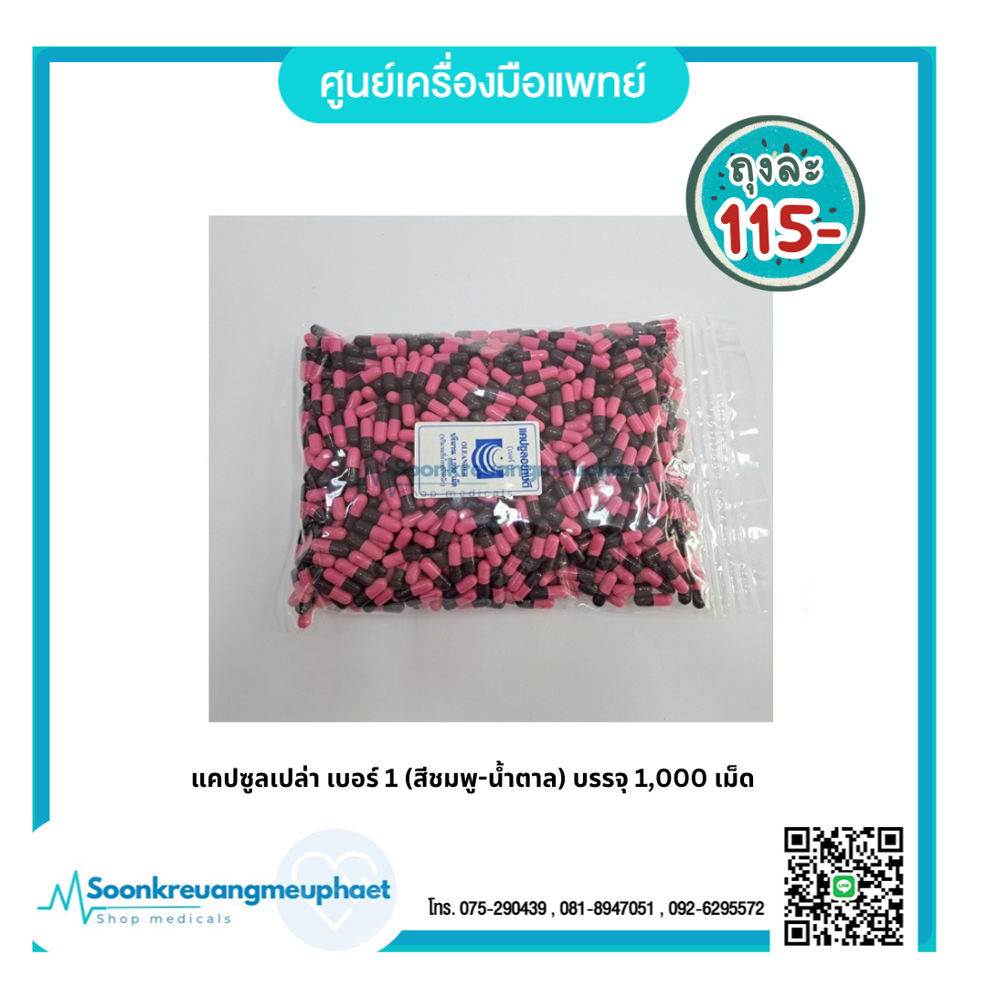 แคปซูลเปล่า เบอร์ 1 (สีชมพู-ดำ) บรรจุ 1,000 เม็ด